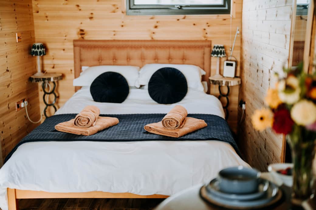 Handmade by ourselves, Bluebell was our first creation back in 2022. This luxury glamping pod offers plenty of space to kick back and relax, whether in the king size bed or the outdoor bath, with the en-suite bathroom also containing a large double shower. There is no need to worry about getting chilly in the winter either, with a wood burner providing the ultimate cosy night in. For summer evenings you can also make use of the charcoal BBQ or firepit.